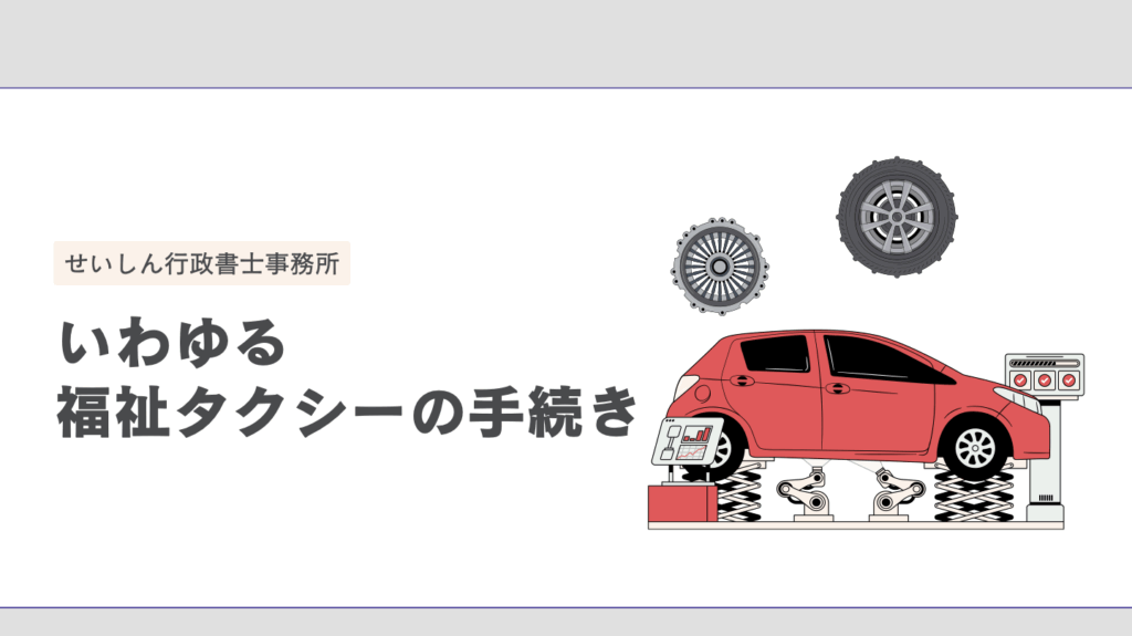 暑い日が続いていますが、みなさまいかがお過ごしでしょうか。5月くらいに依頼がありました、いわゆる福祉タクシー(正式名称は一般乗用旅客自動車運送事業(福祉輸送限定))の新規経営許可申請の許可がおりたというご連絡を運輸支局からいただきました。