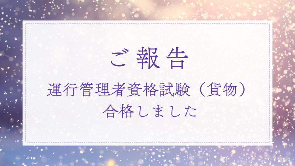 今年3月に受験した運行管理者資格試験(貨物)に合格しました。